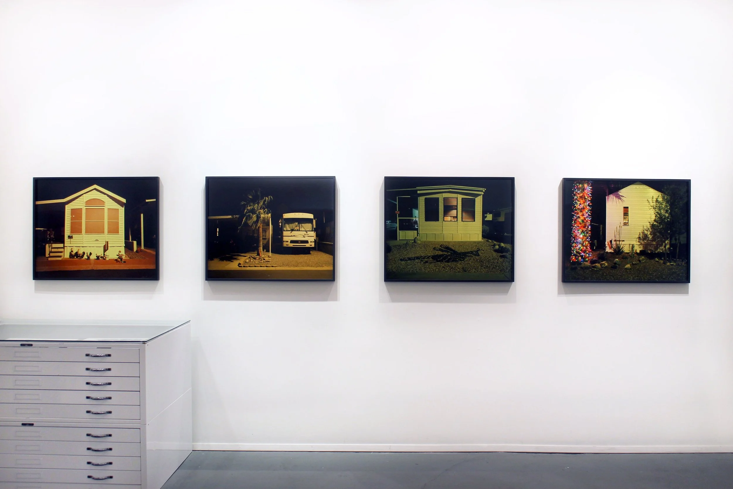 By contrast, Edge of Twilight (2010–ongoing) pulses with latent presence. Shot at night in an all-women, predominantly lesbian retirement community in the Southwestern desert, these photographs of trailers, palm trees, and quiet pathways are absent of people but steeped in their imprint.
