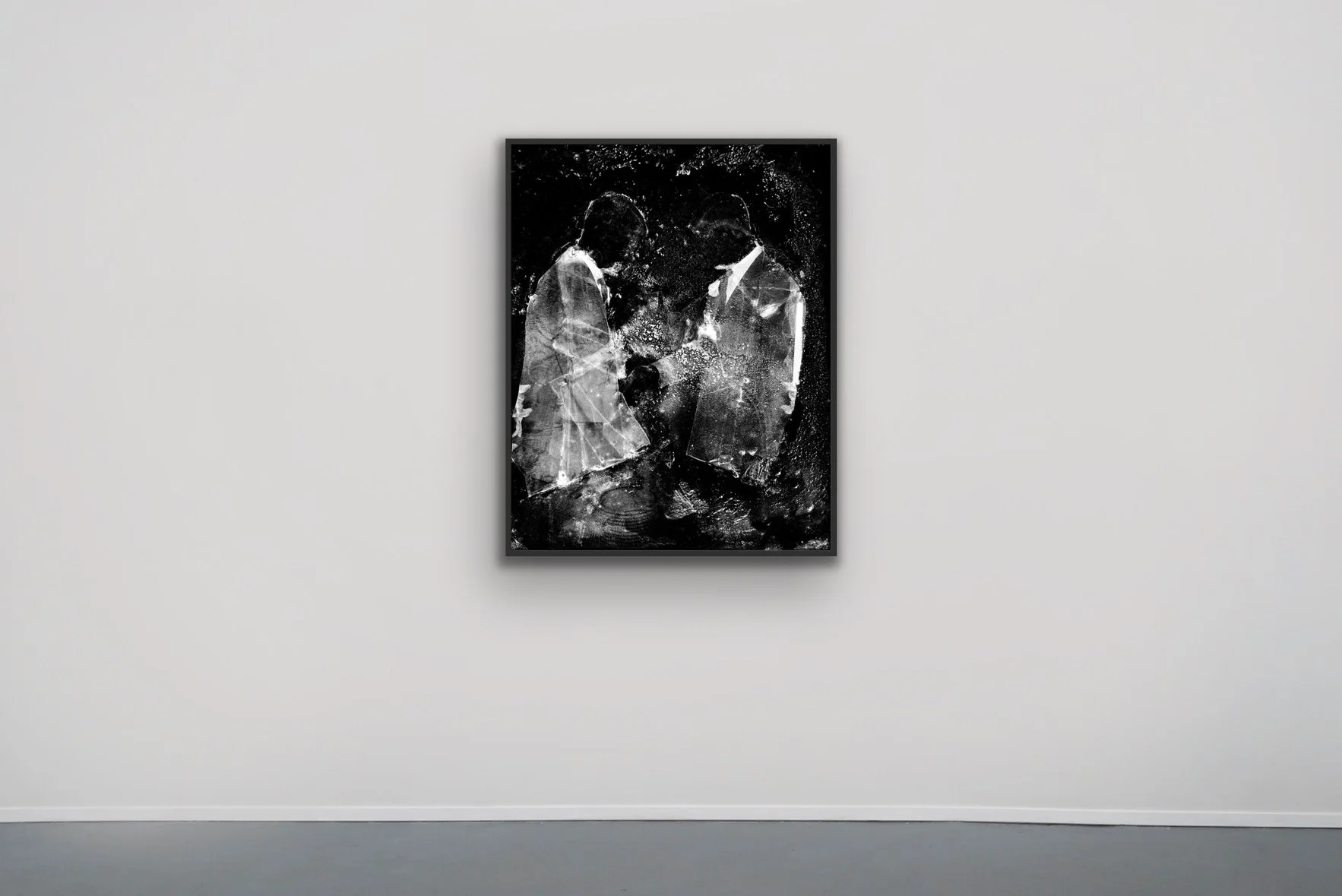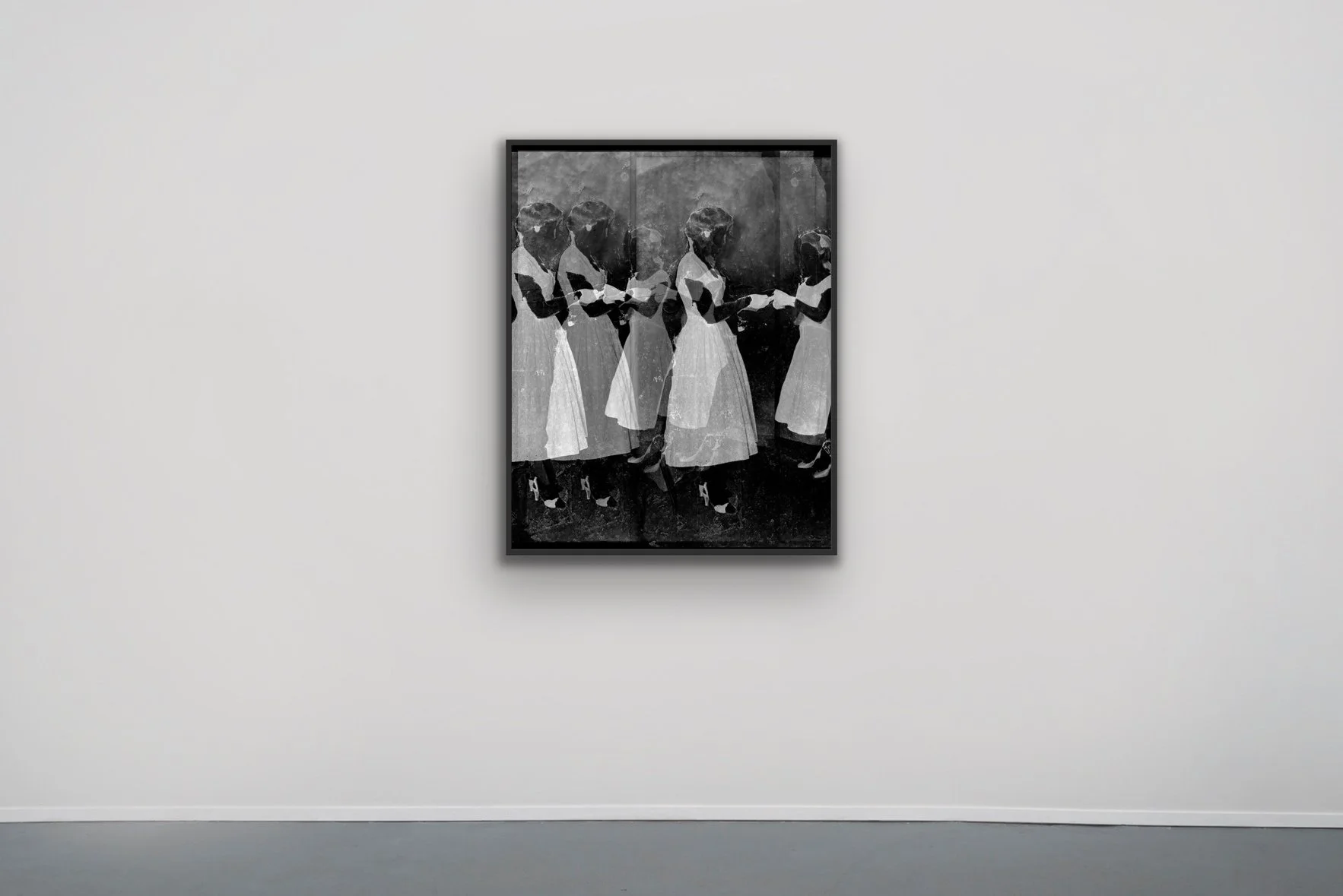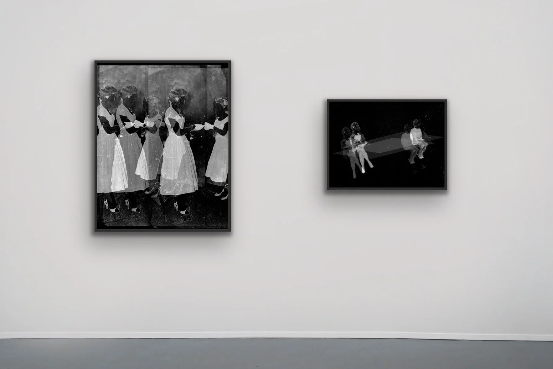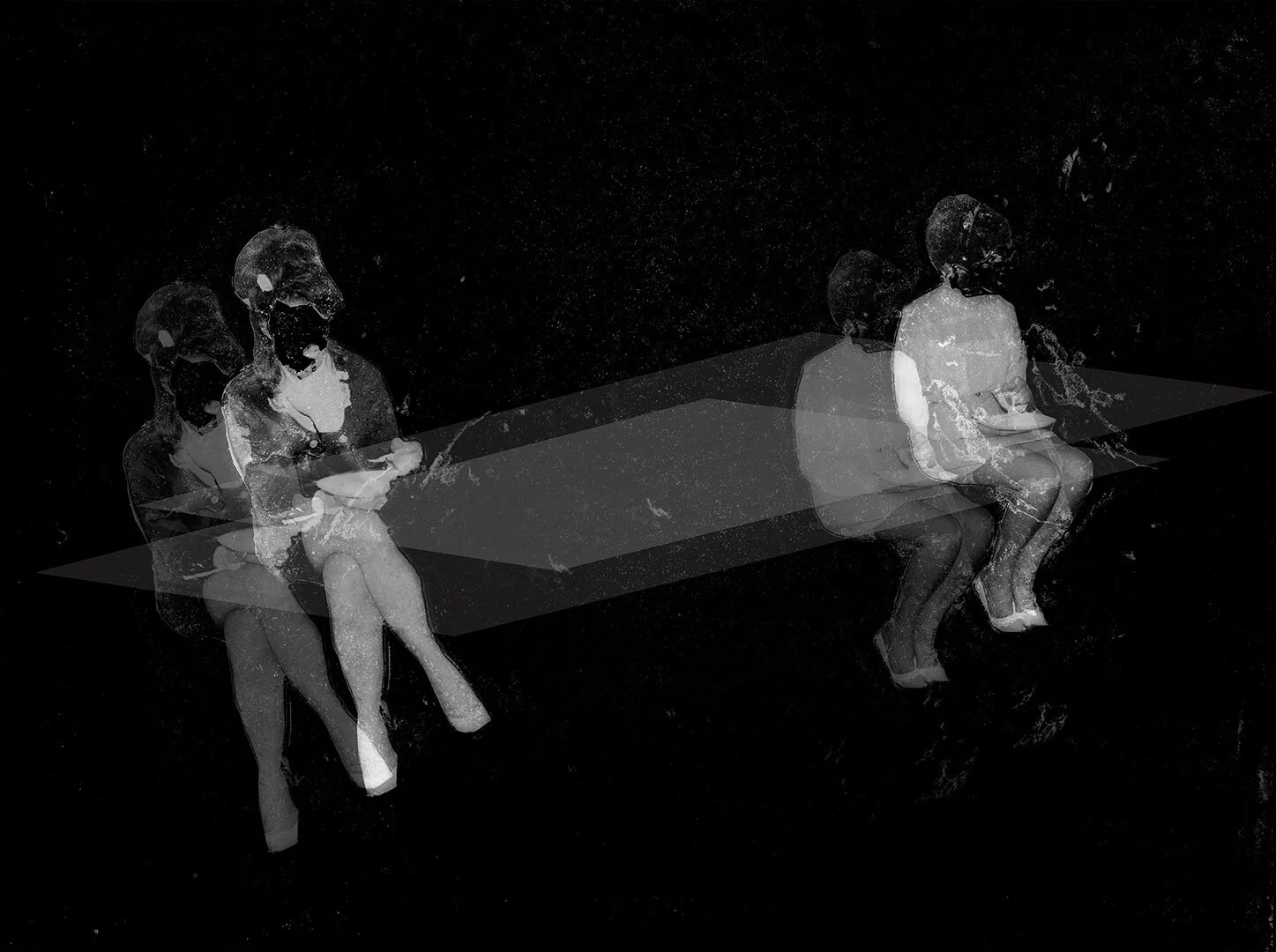 Blending concepts of multiverses and memory's fluidity, Harruthoonyan approached image-making as a scientific experiment. He began with source images—either personal narratives staged for the camera or imagined scenes inspired by found photographs—shot on 4x5 film. From there, he manually dissected the negatives, removing and reassembling layers of emulsion to test how much could be altered while still triggering a visceral response.
